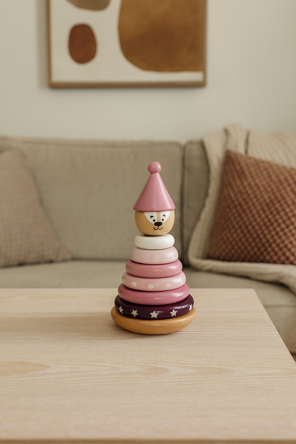 Giv dit barn et sikkert og stimulerende legetøj, der udvikler både motorik, koncentration og koordination. Dette ergonomisk designede stabletårn er fremstillet i 100 % giftfrit, FSC-certificeret træ og malet med vandbaserede, børnesikre farver.