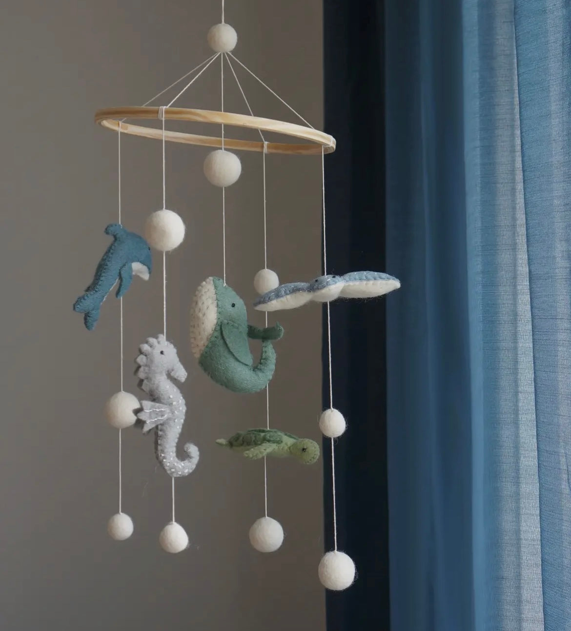 Den smukkeste seaworld mobil fra Gamcha, vil garanteret give søde drømme. Mobilen er pakket ind med fine bånd - perfekt gave til en babyshower, fødselsdag eller som en barsel gave.