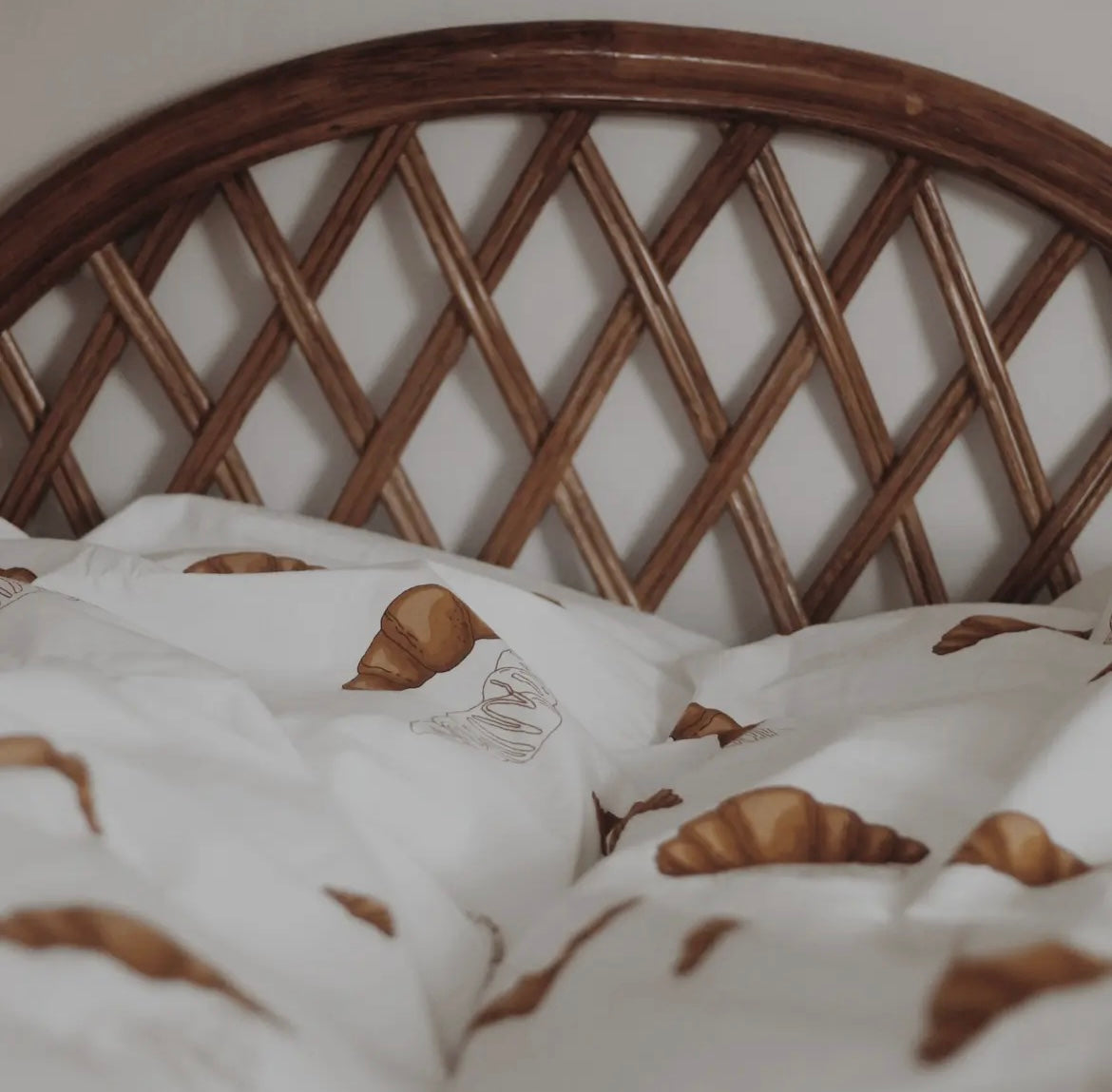 Det lækreste sengetøj fra VacVac studio sikrer din baby en dejlig søvn . Sættet er lavet i 100% økologisk GOTS-certificeret bomuld, og der er ingen lynlås til at genere i hverken dyne- eller hovedpudebetræk.