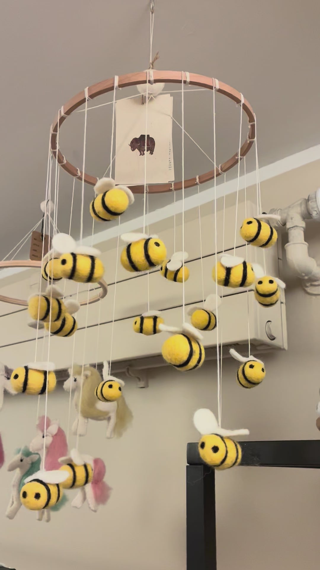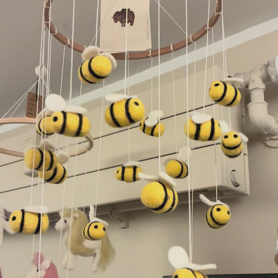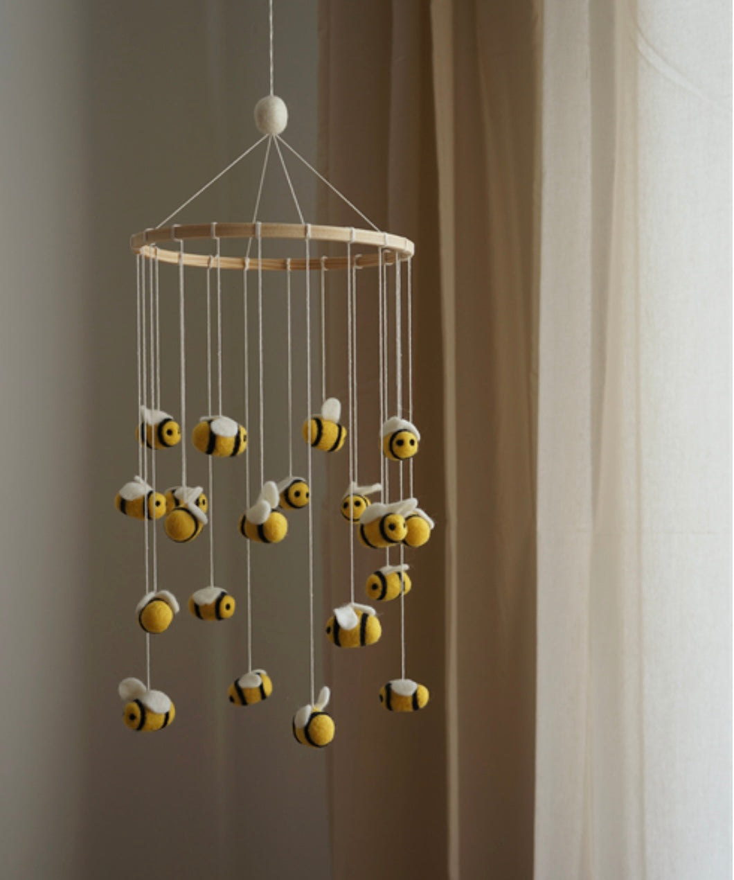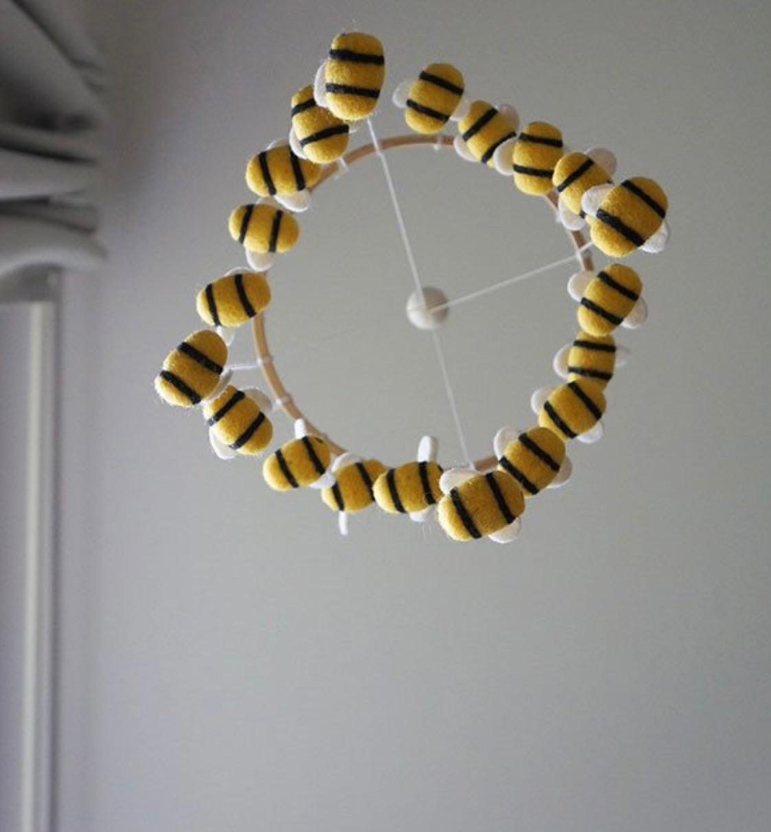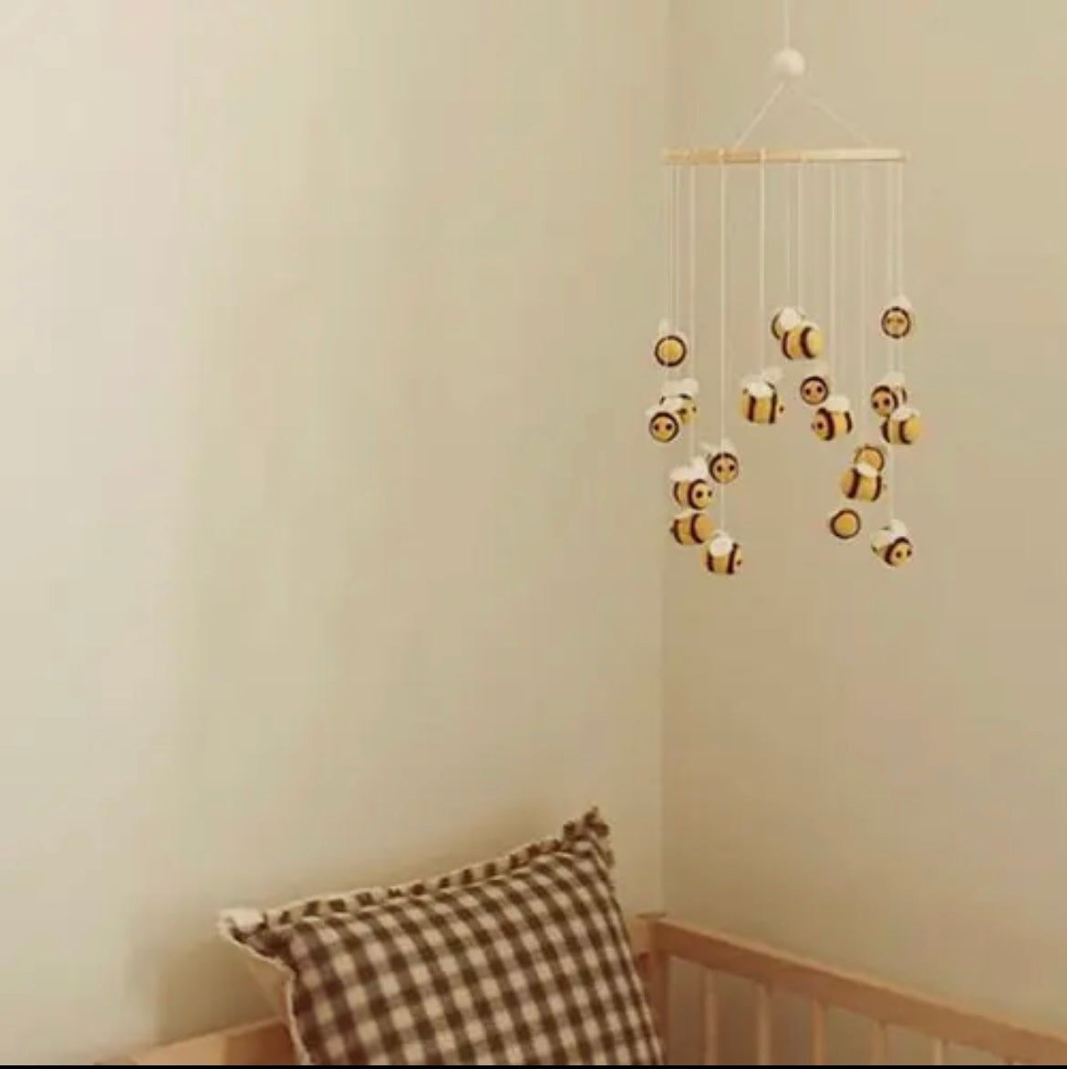 Den smukkeste bi uro fra Gamcha, vil garanteret give søde drømme. Mobilen er pakket ind med fine bånd - perfekt gave til en babyshower, fødselsdag eller som en barsel gave.